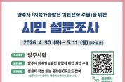 한방통신사 신유철기자 기자 | 양주시는 ‘지속가능발전 기본전략 및 추진계획’ 수립을 위해 시민 의견을 수렴하는 설문조사를 실시한다. 이번 설문조사는 '지속가능발전 기본법'에 따라 양주시의 지역적 특성을 반영한 20년 단위의 기본전략과 5년 단위의 추진계획을 수립하기 위해 마련됐다. 조사 내용은 ▲양주시 지속가능성에 대한 인식 ▲경제·사회·환경 등 분야별 우선 해결 과제 ▲양주시의 미래상 등 총 17개 문항으로 구성됐으며, 설문을 통해 도출된 시민들의 우선순위와 핵심 가치를 바탕으로 양주시만의 차별화된 지속가능발전 목표를 설정할 방침이다. 설문조사는 오는 4월 30일부터 5월 11일까지 12일간 진행되며, 양주시민이라면 누구나 큐알코드를 통한 온라인 조사와 설문지를 통한 오프라인 조사에 참여할 수 있다. 양주시 관계자는 “시민 여러분의 소중한 의견이 양주시의 20년 미래를 만드는 밑거름이 될 수 있도록 많은 관심과 참여를 부탁드린다”고 전했다. [뉴스출처 : 경기도 양주시]