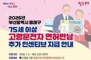 한방통신사 신유철기자 기자 | 부산 동래구는 고령 운전자 교통사고를 예방하고 안전한 교통 환경을 조성하기 위해 2026년부터 ‘고령 운전자 운전면허 자진 반납 추가 인센티브 지급 사업’을 추진한다고 밝혔다. 이번 사업의 지급 대상은 신청일 기준 부산 동래구에 주민등록이 되어있는 75세 이상 운전자로, 운전면허를 최초로 자진 반납하는 경우 20만 원의 인센티브를 지급한다. 해당 인센티브는 부산광역시에서 시행 중인 70세 이상 고령 운전자 운전면허 자진 반납 인센티브와는 별도로 지급된다. 신청을 희망하는 주민은 주소지 관할 동 행정복지센터를 방문해 운전면허를 반납하고 관련 서류를 제출하면 되며, 인센티브는 신청한 달의 다음 달 15일 이내에 본인 명의 계좌로 지급될 예정이다. 장준용 동래구청장은 “고령자의 운전면허 자진 반납을 적극 유도해 교통사고를 예방하고 안전한 교통 환경을 조성하기 위해 이번 사업을 추진하게 됐다”라며 “앞으로도 고령자 맞춤형 교통안전 정책을 지속적으로 확대해 나가겠다"라고 말했다. [뉴스출처 : 부산시동래구]