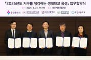 한방통신사 신유철기자 기자 | 용인특례시는 24일 시청 접견실에서 용인교육지원청을 비롯해 3개 학교와 ‘지구를 생각하는 생태학교 육성사업’을 위한 협약을 맺었다. 이날 협약식에는 조영민 교육장과 올해 생태학교로 선정된 대지고 유동철 교장, 효자초 정계환 교장, 도현초 연승희 교장, 담당 교사들이 참석했다. 이들 기관은 협약에 따라 ▲학교별 맞춤형 생태교육 운영 지원 ▲교과·교육과정과 연계한 생태교육 프로그램 개발·자문 ▲생태학교 육성사업 성과평가 등을 위해 협력하기로 했다. 올해 4년 차를 맞이한 ‘지구를 생각하는 생태학교’ 사업은 전국 지자체 중 최초로 환경교육 전문 인력을 학교 현장에 배치, 이론 교육을 넘어 실천 중심의 생태전환교육을 하는 용인시의 핵심 환경교육 사업이다. 시는 2023년부터 해마다 공모를 통해 지역 내 학교를 선정해 왔다. 올해 선정된 3개 학교를 포함해 총 12개교가 생태학교 사업에 참여하고 있다. 올해 기준 용인 지역은 초·중·고 343학급, 학생 9149명이 생태교육에 참여하면서 현장 중심의 체계적인 환경교육으로 높은 평가를 받고 있다. 시는 축