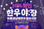 한방통신사 신유철기자 기자 | 남해군은 연말을 맞아 오는 12월 17일부터 20일까지 4일간, 매일 오후 5시부터 9시까지 남해축협 본소 주차장에서 ‘한우야:장(보물섬남해한우 셀프식당)’을 운영한다고 밝혔다. 이번 행사는 얼마 전 군민과 상인들의 뜨거운 호응 속에 마무리된 ‘남해의 맛 – 화전야:장(花田夜:場)’의 열기를 이어받아 군민들에게 겨울밤, 야외 테이블에서 프리미엄 한우 코스를 즐길 수 있는 특별한 경험을 제공하기 위해 마련됐다. 행사 기간 동안 마트에서 100g당 17,000원~13,100원에 판매되는 1++, 1+ 등급 보물섬남해한우(등심, 안심 및 특수부위)를 30% 할인된 가격으로 현장에서 구워 먹을 수 있다. 한편, 예로부터 우리 민족은 겨울철에 쇠고기를 즐겨 먹었는데 음력 10월이면 숯불을 지핀 화로에 번철을 놓고 양념한 쇠고기와 여러 재료를 함께 구워 둘러앉아 나누던 풍속인 난로회(煖爐會)가 있었으며, '열하일기'를 집필한 연암 박지원은 “겨울철 눈 오는 날, 친구를 불러 고기를 구워 먹으니 신선이 사는 곳이 부럽지 않다”고 기록했다. [뉴스출처 : 경상남도남해군]