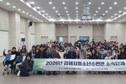 한방통신사 신유철기자 기자 | (재)김해시복지재단 김해시청소년수련관은 지난 14일 오후 2시, 청소년수련관 내 대강당에서 소속 청소년 자치기구 및 동아리 등 소속단체가 모두 참여하는 ‘2026년 청소년수련관 소속단체 합동발대식’을 성황리에 개최했다고 밝혔다. 이번 발대식은 올해 수련관을 이끌어갈 청소년들에게 임명 및 위촉장을 수여해 자긍심을 고취하고, 단체 간 교류를 통해 수련관 소속 청소년으로서 일체감을 형성하기 위해 마련됐다. 현장에는 치열한 면접 심사를 거쳐 최종 선발된 청소년 122명과 가족 대표 11명 등 총 133명이 참석해 자리를 빛냈다. 행사는 1부 발대식과 2부 청소년 특강으로 나누어 진행됐다. 1부에서는 임명(위촉)장을 수여하며 청소년들의 새로운 시작을 격려했으며, 이어지는 단체별 오리엔테이션을 통해 각 단체의 활동 목표를 공유하는 시간을 가졌다. 2부에서는 전문 강사를 초빙하여 청소년들의 미래 설계를 돕는 ‘진로 특강’이 진행되어 참여 청소년들의 큰 호응을 얻었다 김해시청소년수련관은 이번 발대식을 기점으로 청소년 자치활동의 본격적인 시작을 대내외에 공표하