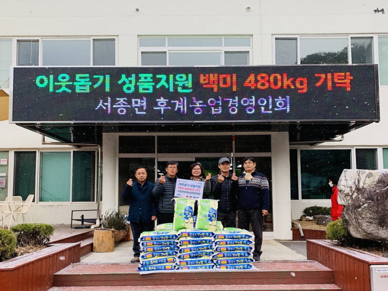 지난 6일 서종면 후계농업경영인회(회장 박흥희)는 서종면 어려운 이웃을 위해 유기농 쌀 480kg(10kg 48포대)를 기탁했다.