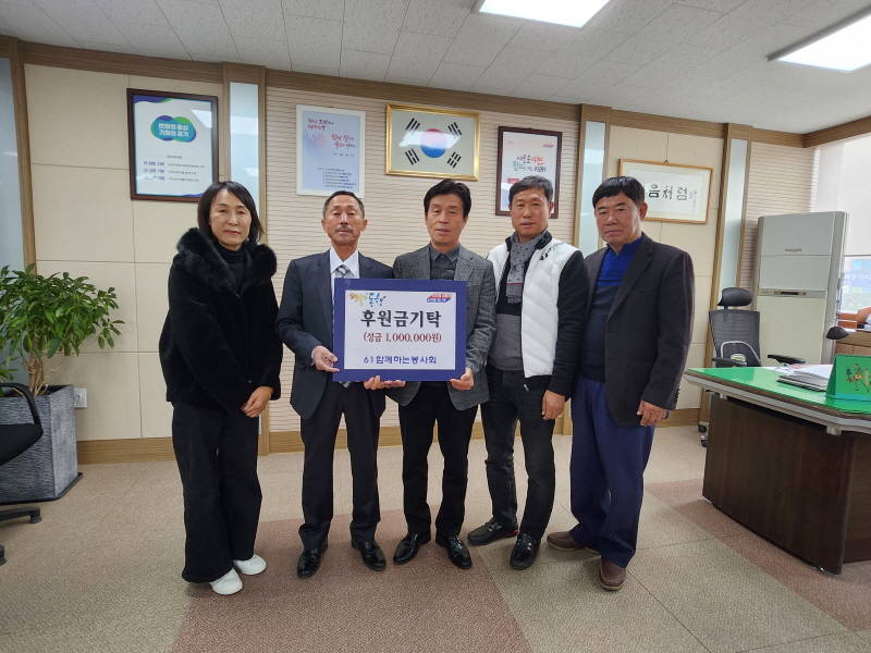 이천시 마장면 61함께하는 봉사회(회장 박준모, 총무 신상교)에서 지난 9일 어려운 이웃을 위해 써달라며 “행복한 동행” 성금 100만 원을 기탁하였다.