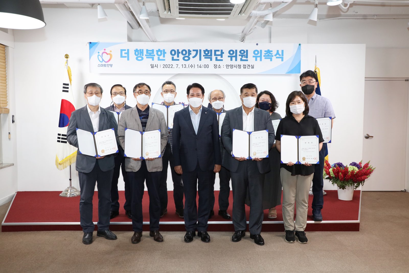 14일 시에 따르면‘더 행복한 안양기획단’(이하 안양기획단)이 13일 최대호 안양시장으로부터 위촉장을 받고 출범했다고 밝힌 것.