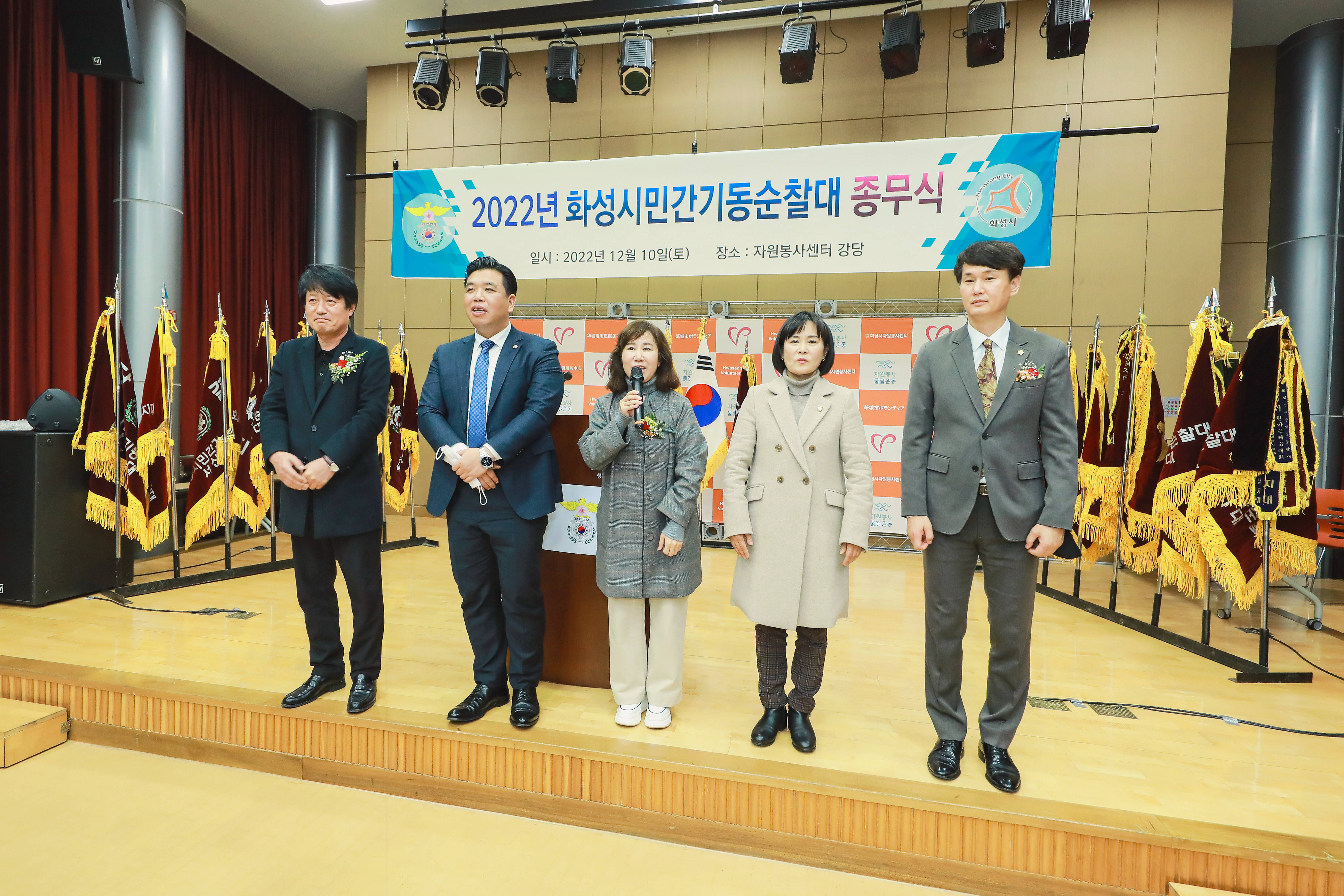 지난 10일 화성시자원봉사센터에서는 ‘화성시 민간기동순찰대 종무식’이 개최되었으며, 해당 행사에 화성시의회 김경희 의장을 포함하여 유재호, 이계철, 위영란, 송선영 의원이 참석하여 민간기동순찰대의 노고에 감사인사를 전했다.