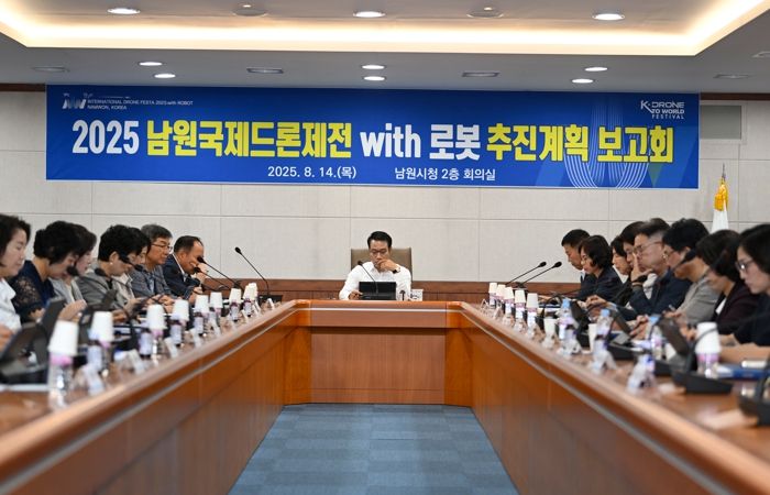 한방통신사 김성의 기자 | 전북특별자치도 남원시는 8월 14일, 시청 회의실에서 ‘2025 남원국제드론제전 with 로봇’ 세부추진 보고회를 개최하고 준비에 박차를 가하고 있다.