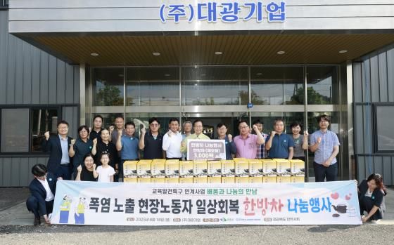 이번 행사는 완주군 교육발전특구 사업의 일환으로, 완주군 평생교육 학습자들이 직접 한방 재료를 구입·제조해 마련한 제호탕 3,000팩(시가 1,200만 원 상당)을 (사)전북금형산업협회 소속 완주기업 노동자들에게 전달했다.