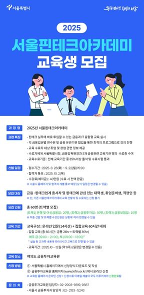 천세은 서울시 금융투자과장은 “서울시는 급변하는 금융환경 속에서 핀테크 전문인력을 체계적으로 양성하기 위해 서울 핀테크 아카데미를 운영하고 있다”며, “교육생들이 실무 중심의 커리큘럼과 업계 전문가 네트워크를 통해 현장에서 경쟁력을 발휘할 수 있도록 지원하겠다”라고 밝혔다.