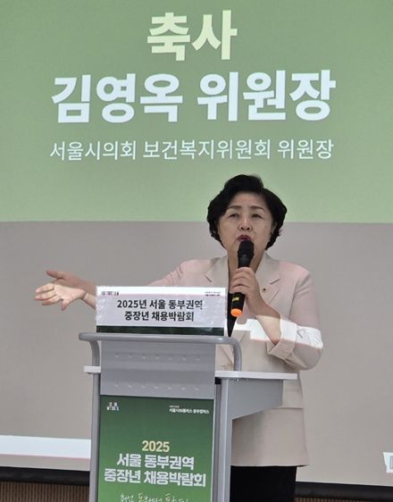 한방통신사 신유철기자 기자 | 서울특별시의회 보건복지위원회 김영옥 위원장(국민의힘, 광진3)은 8월 26일 10시 30분, 서울시50플러스 동부캠퍼스에서 열린 '2025 서울 동부권역 중장년 채용박람회'개회식에 참석하여 축사를 통해 중장년층의 일자리 지원과 사회적 역할의 중요성을 강조했다.