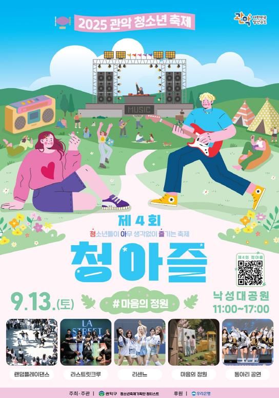 한방통신사 신유철기자 기자 | 관악구가 오는 9월 13일 낙성대공원에서 2025 관악 청소년 축제 ‘제4회 청아즐(부제: 마음의 정원)’을 개최한다.