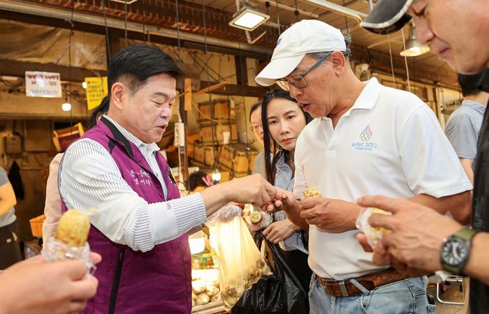 하루 유동 인구가 주말 최대 10만 명을 넘는 청량리시장에서 타니 대사는 “청량리시장을 통해 태국의 음식과 식재료를 소개하고 싶다”는 바람을 전했다. 이필형 구청장은 “민간 교류를 통해 시장에 입점하고자 하는 태국 상인이 있다면 적극 돕겠다”고 화답했다.