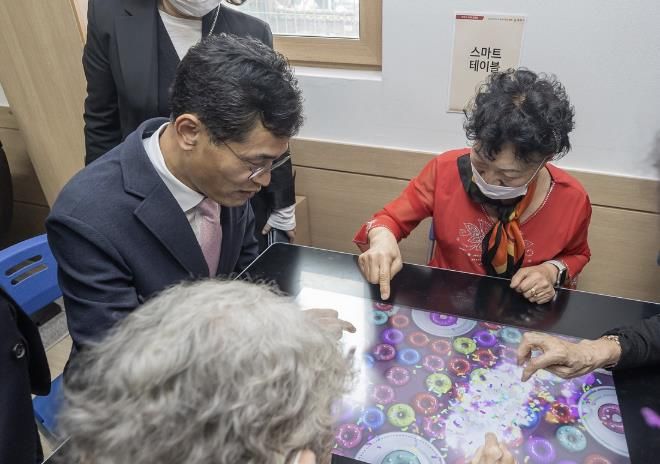 실내 걷기 운동기구인 스마트워킹은 유명한 관광지 산책 코스로 맞춤형 솔루션을 제공하고, 스마트테이블은 터치형 화면을 활용한 인지강화 게임으로 치매예방을 돕는다.