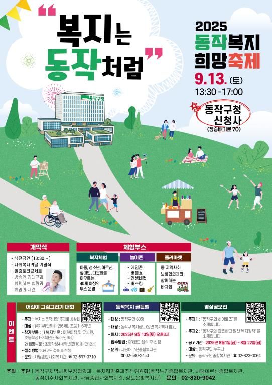 한방통신사 신유철기자 기자 | 동작구가 제26회 사회복지의 날(9/7)을 기념해 오는 13일 구청 신청사에서 ‘2025 동작복지희망축제’를 개최한다고 밝혔다.