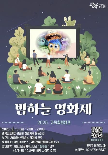 한방통신사 신유철기자 기자 | 관악구가 오는 13일 ‘밤하늘 영화제’를 개최해 관악산 자연 속에서 가족, 친구들과 함께 힐링하는 여름밤 추억과 낭만을 선사할 예정이다.