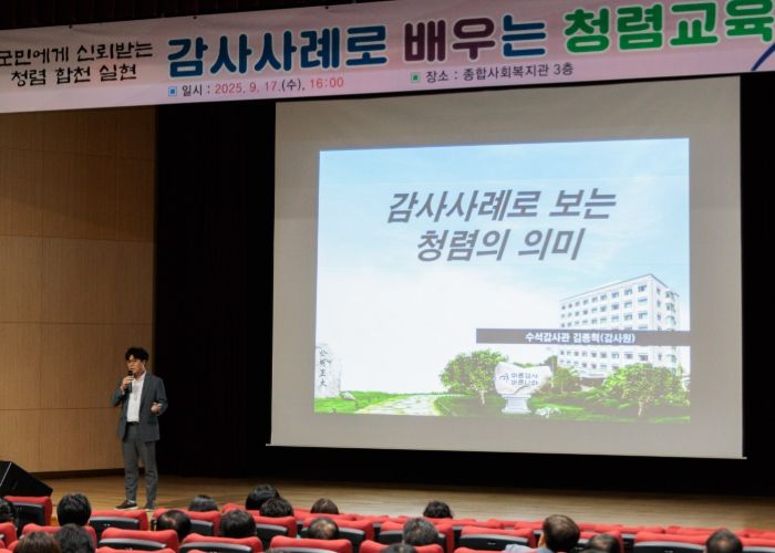 교육에는 감사원 감사교육원 김종혁 감사관이 강사로 초청되어, 실제 감사사례를 중심으로 청탁금지법, 이해충돌방지법 등 청렴 관련 주요 내용과 공직자가 직무수행 과정에서 유의해야 할 사례들을 알기 쉽게 설명했다.
