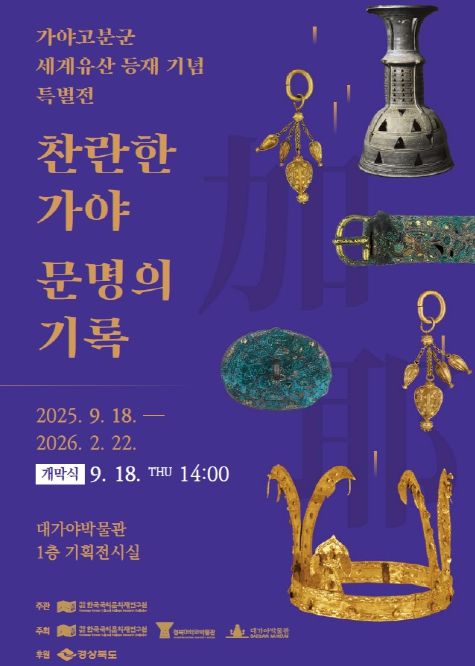 일본을 비롯한 해외 29개국에 흩어져 있는 가야 유산 중 100여 점의 사진 자료를 전시하며, 고령 지산동 고분군을 포함한 세계유산 등재 가야고분군 7곳의 역사적 배경과 유물의 특징을 함께 소개한다.