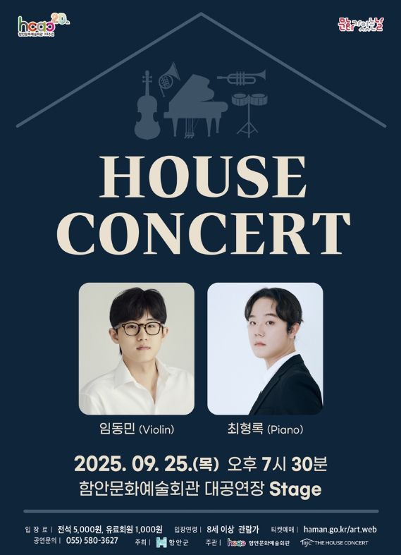 하우스콘서트는 2002년 서울에서 시작돼 전국으로 확산된 ‘연주자와 관객이 가까이 호흡하는 공연’으로, 함안문화예술회관은 2013년부터 본 공연을 도입해 지역민이 일상 속에서 최고 수준의 클래식 음악을 직접 접할 기회를 제공하고 있다.