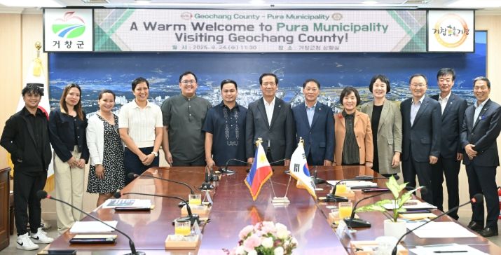 이날 구인모 거창군수와 이재운 거창군의회 의장, 신화범 북부농협 조합장을 비롯한 거창군 관계자들은 거창군청 상황실에서 필리핀 푸라시 대표단의 방문을 환영하고 양 지자체 간의 상생발전 방안을 모색하기 위한 간담회를 가졌다.