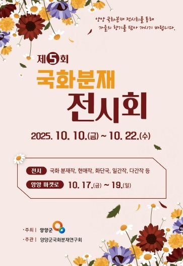 한방통신사 양호선기자 기자 | 양양군 국화분재연구회(회장 윤종욱)는 오는 10일부터 22일까지 13일간 양양군농업기술센터에서 ’제5회 국화분재 전시회‘를 개최한다.