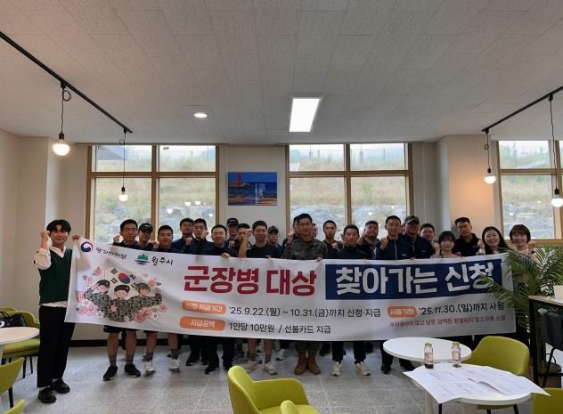 한방통신사 양호선기자 기자 | 원주시는 9월 30일부터 10월 1일 이틀간 군 장병 대상 “찾아가는 신청”을 접수받기 위해 항공사제71항공정비대대, 1군지사 2곳을 방문했다.