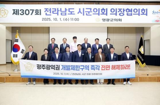 한방통신사 신다은기자 기자 | 전라남도 시군 의회 의장협의회는 지난 10월 1일 영광군의회에서 개최된 제307회 정례회의에서“광주광역권 개발제한구역 전면 해제 촉구 건의안”을 만장일치로 채택했다.