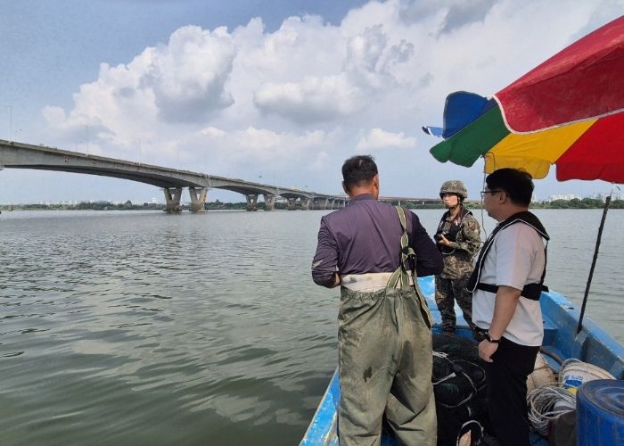 이번 현장점검은 김포시, 고양시, 군(육군 제17사단) 및 어민 등이 지난 8월 백마도에서 가진 위험예방 대책회의에 따른 후속조치로 현장을 확인했다. △김포대교 교각 기존 안내판 훼손여부 △신곡수중보 접근경로 △어민 그물 설치구역 등을 직접 확인했다.