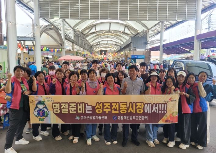 이번 행사는 추석명절을 앞두고 지역 전통시장 활성화와 지역경제 살리기에 보탬이 되고자 마렸됐으며 생활개선성주군연합회 임원 및 읍·면 회장단 19명이 참석해 성주전통시장에서 제수용품과 지역 농산물을 구입했다.