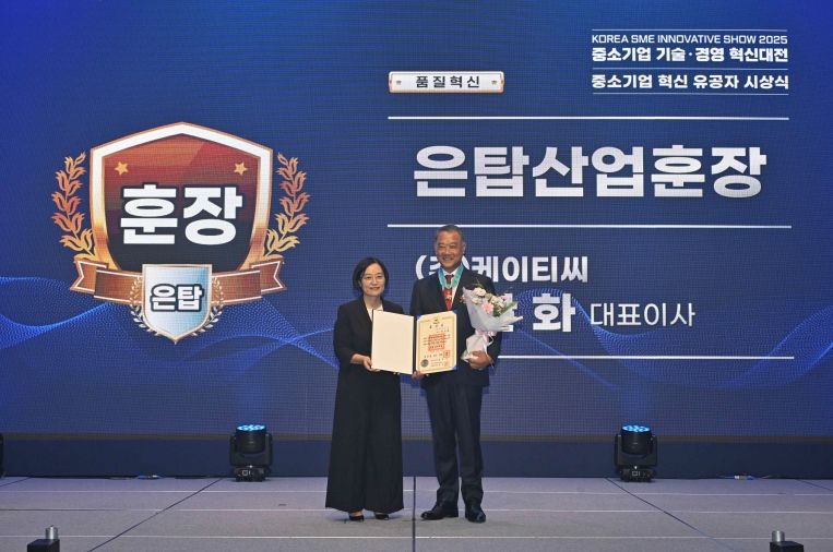 한방통신사 신유철기자 기자 | 경상남도 함양군 휴천면 출신 향우인 박찬화 ㈜유아이엘 및 ㈜케이티씨 대표이사가 지난 9월 4일 제주에서 열린 ‘2025 중소기업 기술·경영혁신대전’에서 품질 혁신 부문 은탑산업훈장을 수상했다.