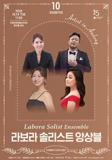 사랑의 다양한 감정을 음악으로 만날 수 있는 '라보라 솔리스트 앙상블' 공연은 전석 1만 원으로 5세 이상 관람이 가능하며, 50석 한정이다. 자세한 사항은 안동문화예술의전당 누리집 또는 유선을 통해 확인할 수 있다.