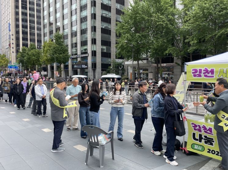 행사를 주최한 권영복 김천시 서울사무소장은 “서울 도심 한가운데에서 김천의 명품 과일을 소개할 수 있어 뜻깊다.”라며, “이번 행사를 계기로 샤인머스켓하면 김천이 바로 생각날 수 있도록 더 노력하겠다.”라고 밝혔다.