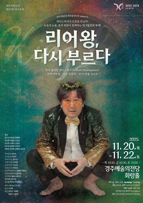 한방통신사 신유철기자 기자 | 경주시립극단(예술감독 강성우)은 오는 11월 20일부터 22일까지 3일간 경주예술의전당 화랑홀에서 제133회 정기공연 '리어왕, 다시 부르다'를 선보인다.