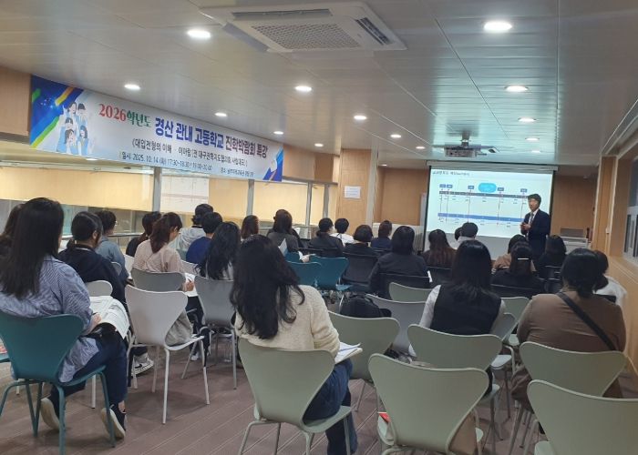 한방통신사 신유철기자 기자 | 경상북도경산교육지원청은 2025년 10월 14일 남부미래교육관에서 ‘2026학년도 경산 관내 고등학교 진학박람회’를 성황리에 개최했다. 이번 행사에는 중학교 3학년 학생과 학부모 등 200여 명이 참석해 높은 관심을 보였다.
