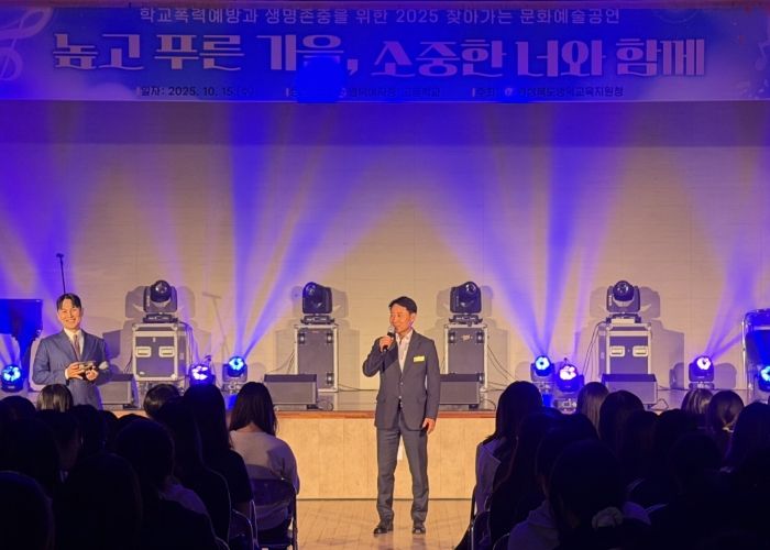 한방통신사 신유철기자 기자 | 영덕교육지원청은 10월 14일부터 16일까지 관내 초, 중, 고등학교 5교에서 학생들과 교직원을 대상으로 2025 찾아가는 문화예술공연 ‘높고 푸른 가을, 소중한 너와 함께’를 성황리에 운영했다.