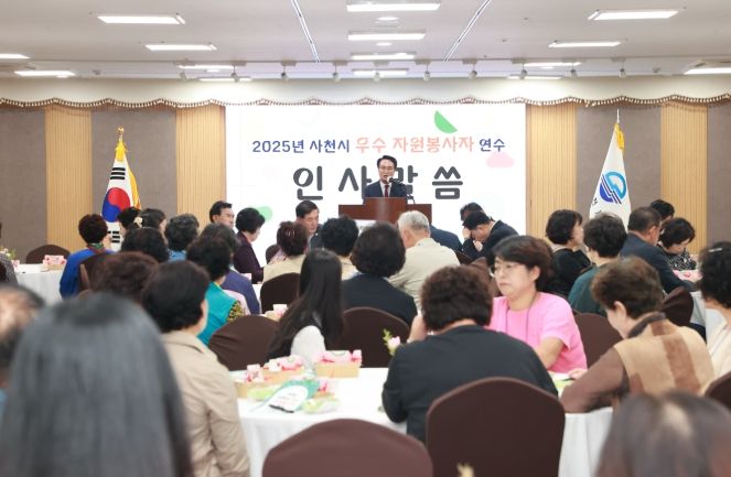 한방통신사 신유철기자 기자 | 사천시는 지역 사회에 따뜻함을 전달하고 있는 자원봉사자들의 노고를 격려하기 위해 ‘2025년 우수 자원봉사자 연수’를 개최했다고 20일 밝혔다.