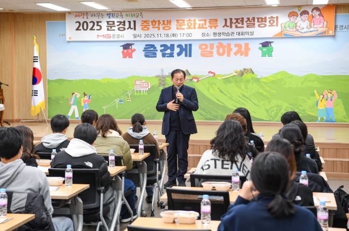 한방통신사 신유철기자 기자 | 문경시는 지난 18일 문경시 중학생 문화교류 프로그램에 참가할 학생과 학부모 30여 명을 대상으로 평생학습관 3층 대회의실에서 사전설명회와 안전교육을 가졌다.