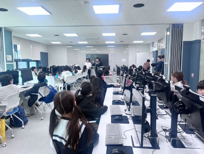미디어 창작교실은 학급별로 2회 운영되며, 1회에는 학교로 찾아가는 교육으로 학생들이 만들어 보고 싶은 숏폼 콘텐츠에 대해 직접 주제와 내용을 정하고, 2회는 미디어교육센터의 시설과 장비를 활용해서 학생들이 기획했던 숏폼 콘텐츠를 촬영하고 편집하는 과정을 운영했다.