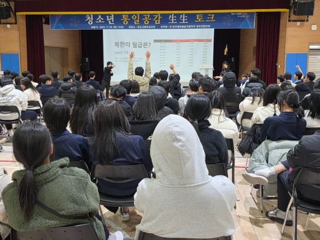 한방통신사 신유철기자 기자 | 청도군은 지난 18일 청도고등학교 강당에서 민주평화통일자문회의 청도군협의회 주관으로 '2025 청소년 통일공감 生生(생생) 토크'를 개최했다고 밝혔다.