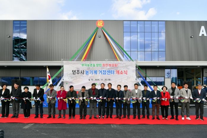영주시는 농기계 임대·정비·교육 기능을 한곳에 모은 ‘영주시 농기계 거점센터’가 지난 20일 준공 및 개소식을 갖고 본격 운영에 들어갔다고 밝혔다.