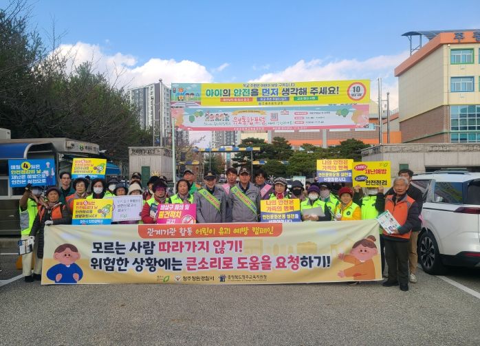 한방통신사 권영분기자 기자 | 청주시는 20일 청원구 주중초등학교 일원에서 어린이 등하굣길 안전 확보를 위한 ‘어린이 약취·유인 예방 캠페인’을 실시했다.
