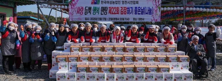 한방통신사 신유철기자 기자 | 한국여성농업인 영천시연합회는 20일 금호읍 대현사에서 ‘2025년 사랑의 김장김치 담그기 및 나눔 행사’를 진행했다.