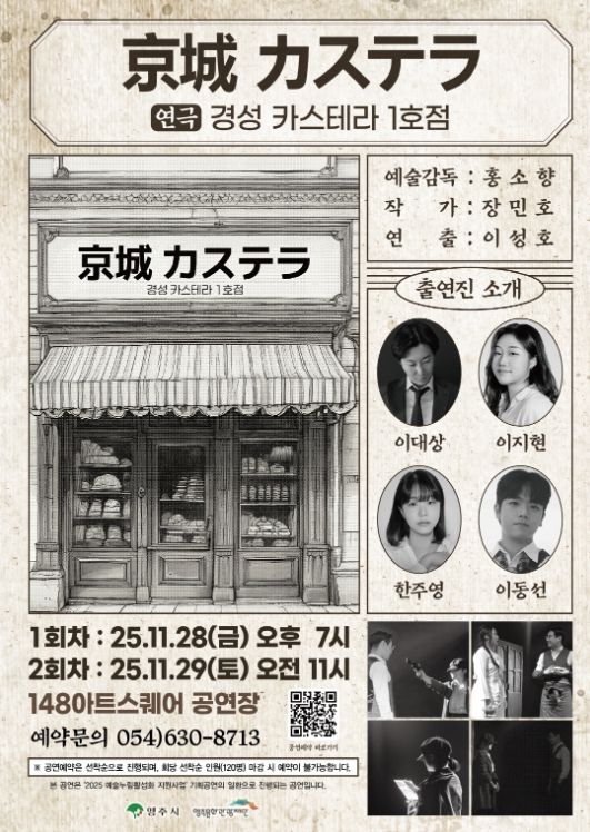 한방통신사 신유철기자 기자 | (재)영주문화관광재단은 오는 11월 28일 오후 7시와 11월 29일 오전 11시, 148아트스퀘어 공연장에서 광복 80주년을 기념한 창작연극 '경성 카스테라 1호점'을 선보인다.