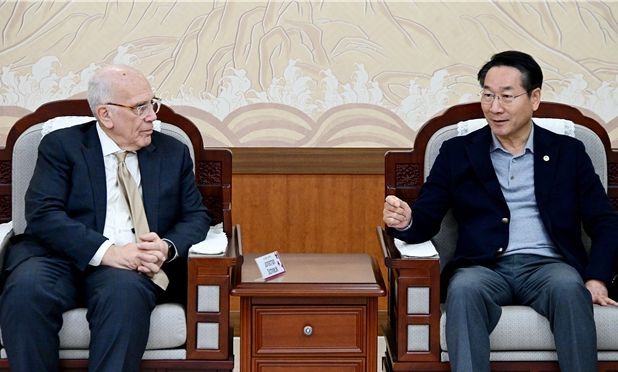 한방통신사 신유철기자 기자 | 유정복 인천시장은 12월 3일 오후 인천시청 접견실에서 세계 최고 수준의 의과·바이오 연구 중심 대학인 존스홉킨스대의 조나단 슈넥(Jonathan schneck) 의과대학 교수(왼쪽) 일행을 접견했다.