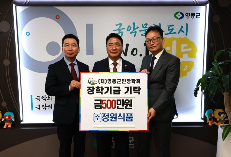 영동군민장학회 관계자는 “정원식품이 매년 꾸준한 기부로 지역 인재 육성에 큰 힘을 보태고 있는 영동군을 대표하는 모범 기업이며 매출 또한 올해 첫 400억 매출을 돌파할 정도로 우수기업이다”라고 말했다.