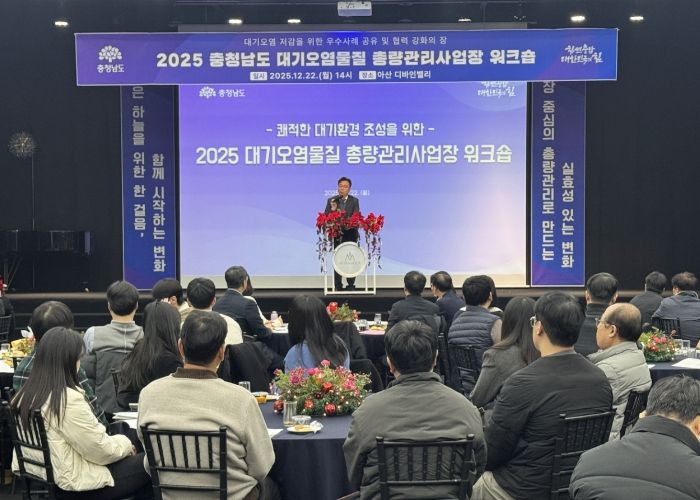 도는 22일 아산 디바인밸리에서 김영명 도 환경산림국장과 총량관리사업장 80여곳 관계자, 담당 공무원 등 100여 명이 참석한 가운데, ‘2025 대기오염물질 총량관리사업장 연수’를 개최했다.
