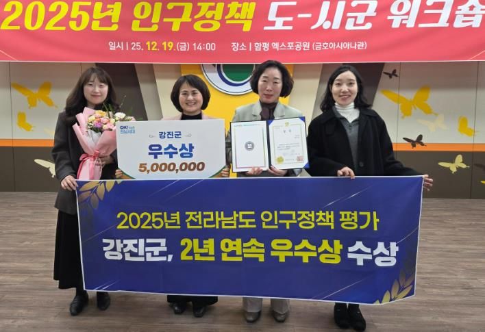 한방통신사 신다은기자 기자 | 강진군이 전라남도가 실시한 2025년 인구정책 우수 시·군 평가에서 ‘우수상’을 수상했다.