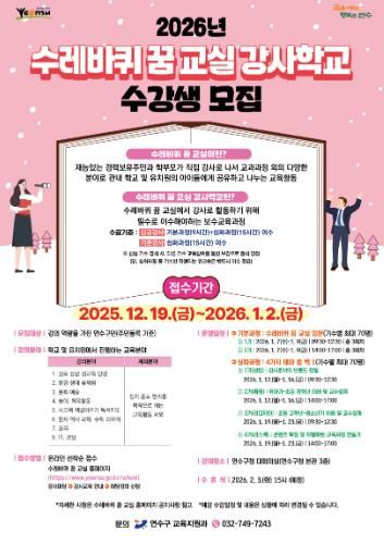 교육은 2026년 1월 7일부터 1월 23일까지 연수구청 대회의실서 진행되며, 총 420명을 과정별로 선착순 모집한다.