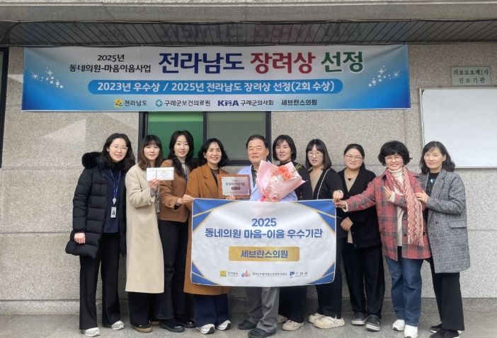 한방통신사 신다은기자 기자 | 구례군 정신건강복지센터는 전라남도 통합정신건강증진 사업인‘동네의원 마음이음사업’ 동네의원 부문에서 관내 세브란스의원이 장려상을 수상했다고 밝혔다.