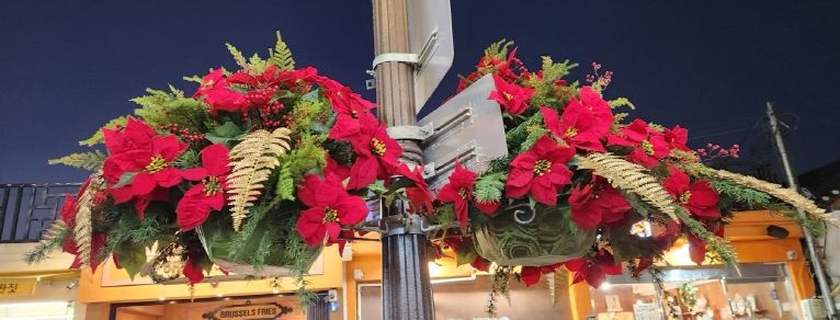 관광객 방문이 집중되는 황리단길 일원에는 가로등에 포인세티아 화분 56개를 설치해 연말연시와 겨울철 관광 성수기에 어울리는 따뜻한 분위기를 연출했다.