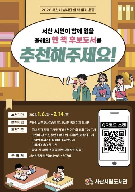 한방통신사 신태공 기자 | 충남 서산시는 오는 1월 6일부터 2월 14일까지 2026년 범시민 한 책 읽기 운동의 후보 도서를 추천받는다고 밝혔다.