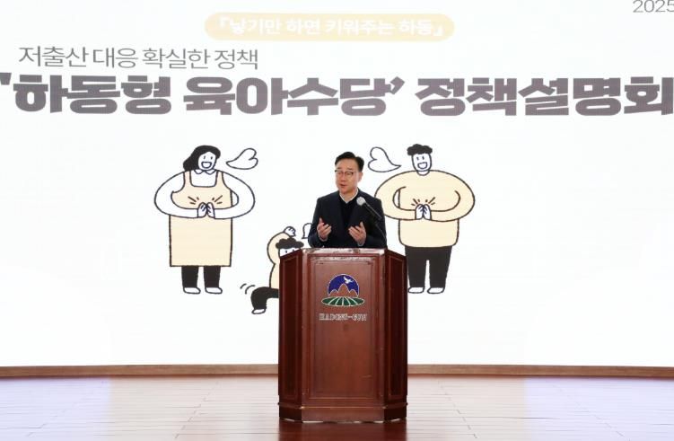 ‘하동형 육아수당’은 만 7세 미만 아동에게 월 60만 원의 하동사랑상품권을 지급하는 제도로, 2년간의 끈질긴 협의와 노력 끝에 결실을 맺어 올해부터 시행 중이다.